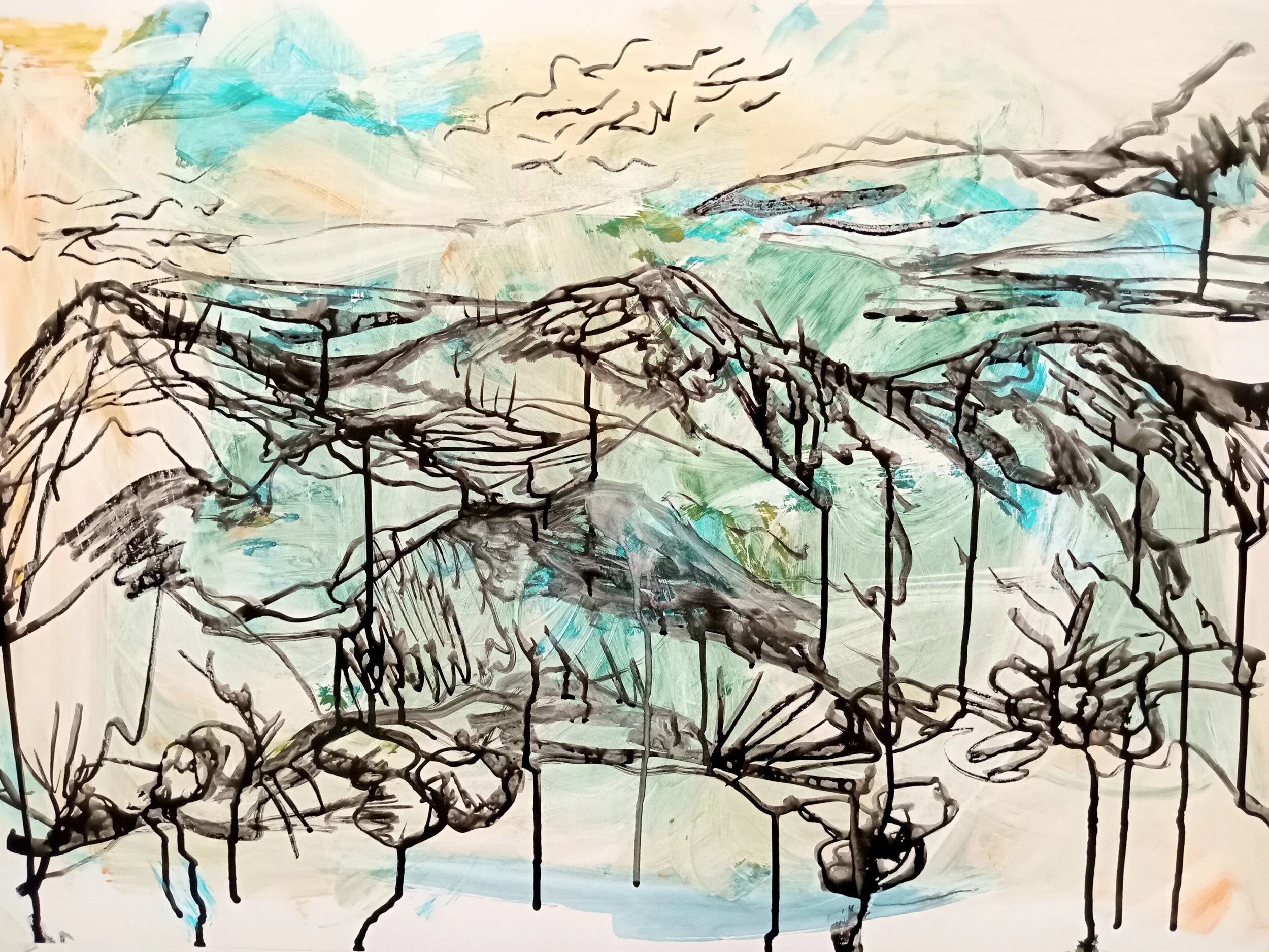 Hyper-lapse of painting butterflies (above) and paintings from the past year or so below (click arrows to scroll across). I’ve been experimenting with acrylic and oil pastel on shiny printing poster paper (size A0, A1, A2). Thanks to Pete Nelson for giving me kilos of recycled paper, it’s really supported my creative practice.